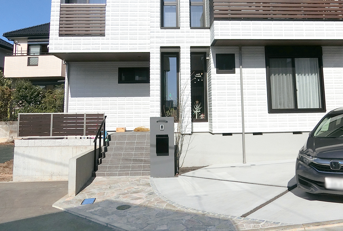 2021年1月3日 / 最終更新日時 : 2021年1月3日 lantern BLOG 東京都 町田市 モダンスタイルのエクステリア 今回の外構工事は、東京都町田市の新築外構のご依頼です。 ホワイトとダークブラウンのシンプルモダンな建物に合わせて、外構もシンプルが基本でプランしています。 ベーシックな色を中心としていますが、冷たくなり過ぎないように。 アプローチの天然石は、光沢があり淡い色味を取り入れて柔らかい雰囲気になりました。 立水栓は造作でモザイクタイルを貼ってモザイクタイルの周りは左官仕上げでシンプルに。
