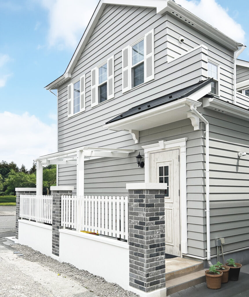 今回は、ブルーグレー色のお家に合わせた、エクステリアをご紹介します♪